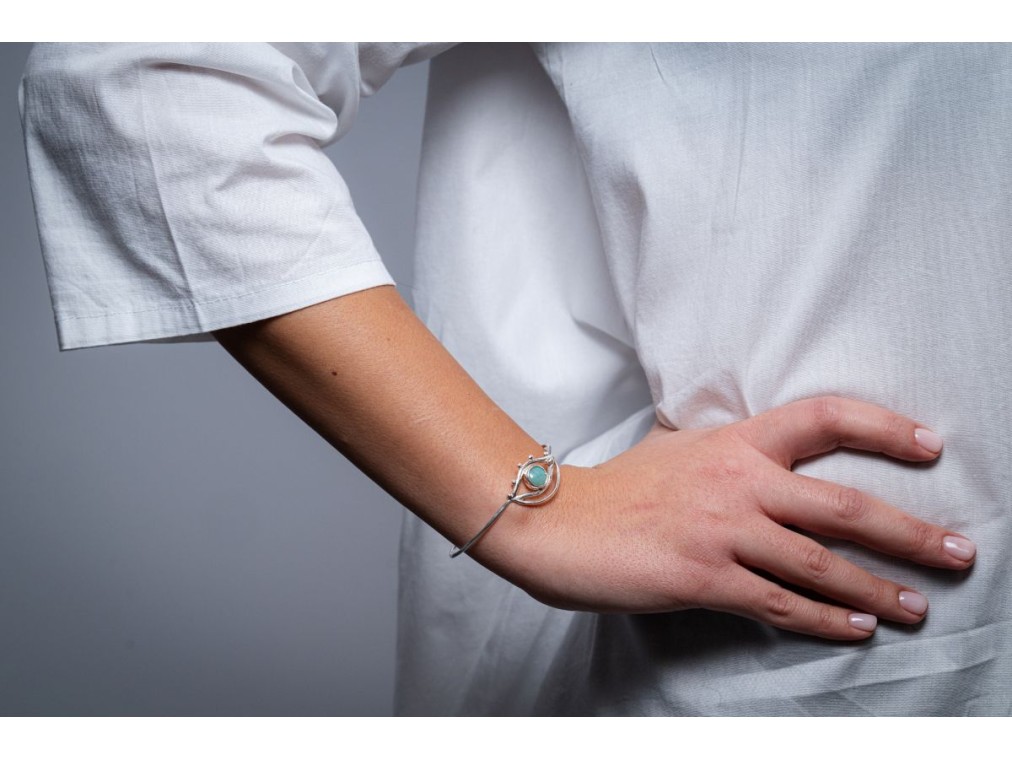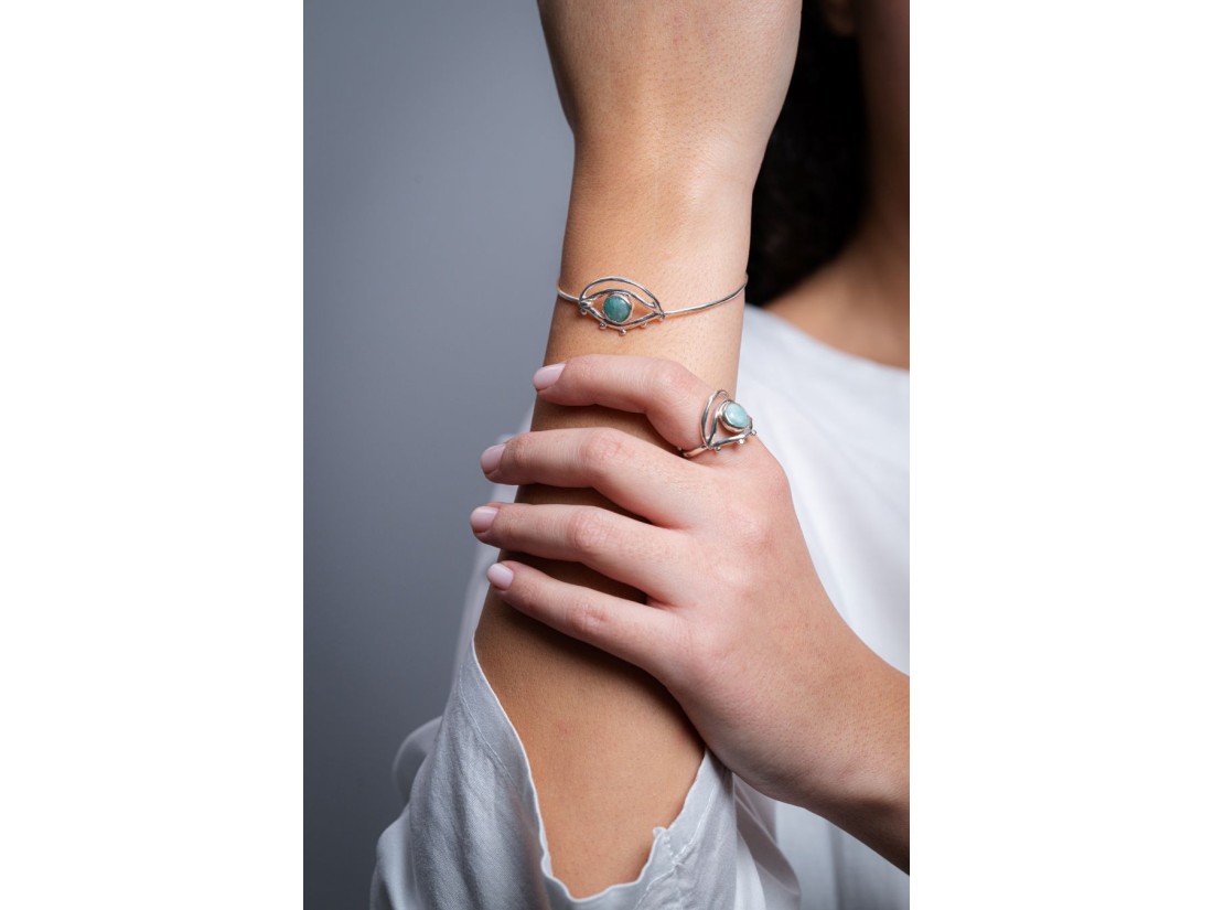Χειροποίητο βραχιόλι από ασήμι 925 και γαλάζια πέτρα από αμαζονίτη.